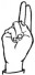 На ћирилици написано НИНА КЛИНЦОВ састоји се из 11 слова [?]. Исписано ћириличном једноручном азбуком за глувонеме: